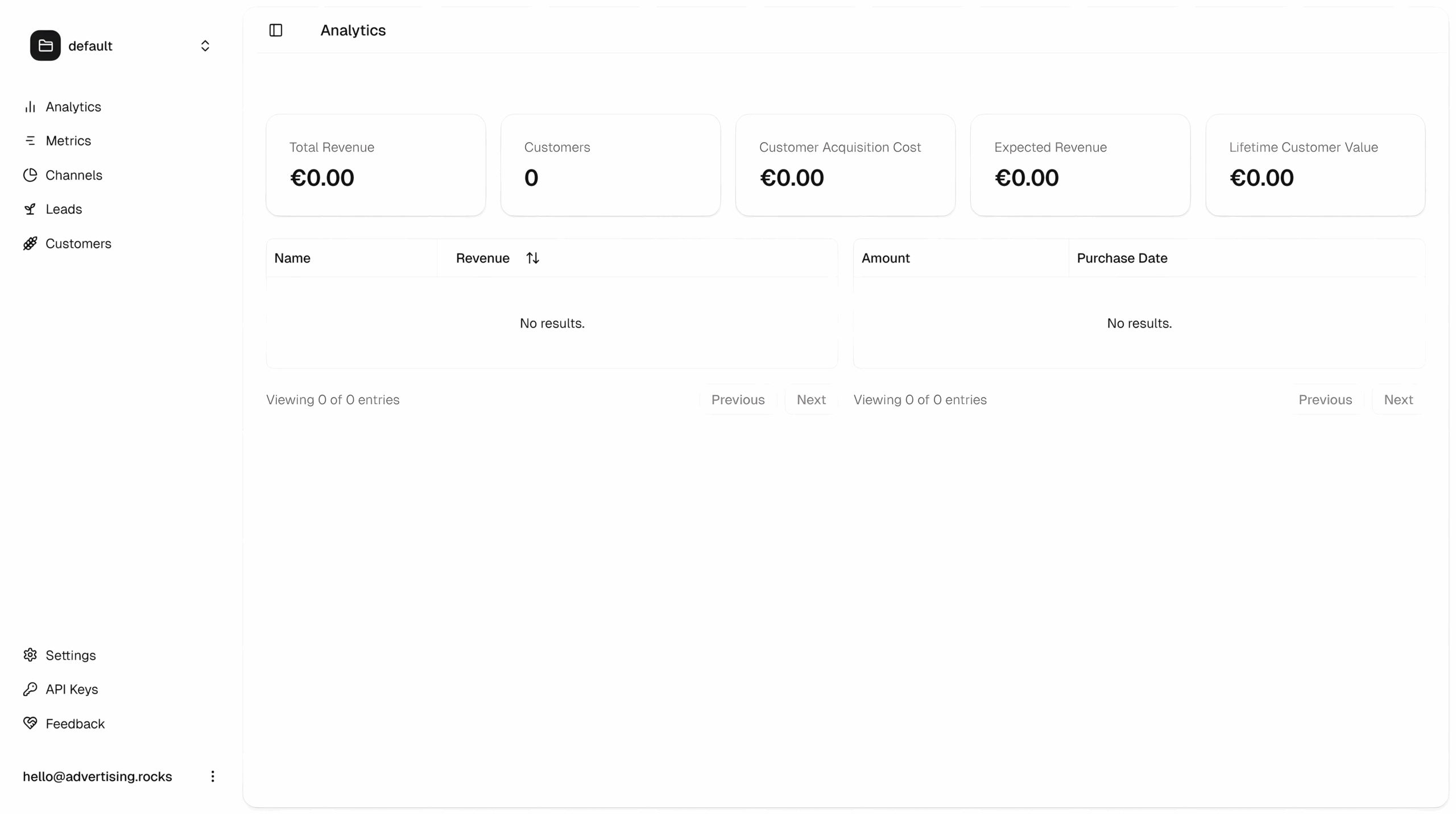 First, head over to app.advertising.rocks and create your account. You’ll need a valid email address, your name and a secure password.